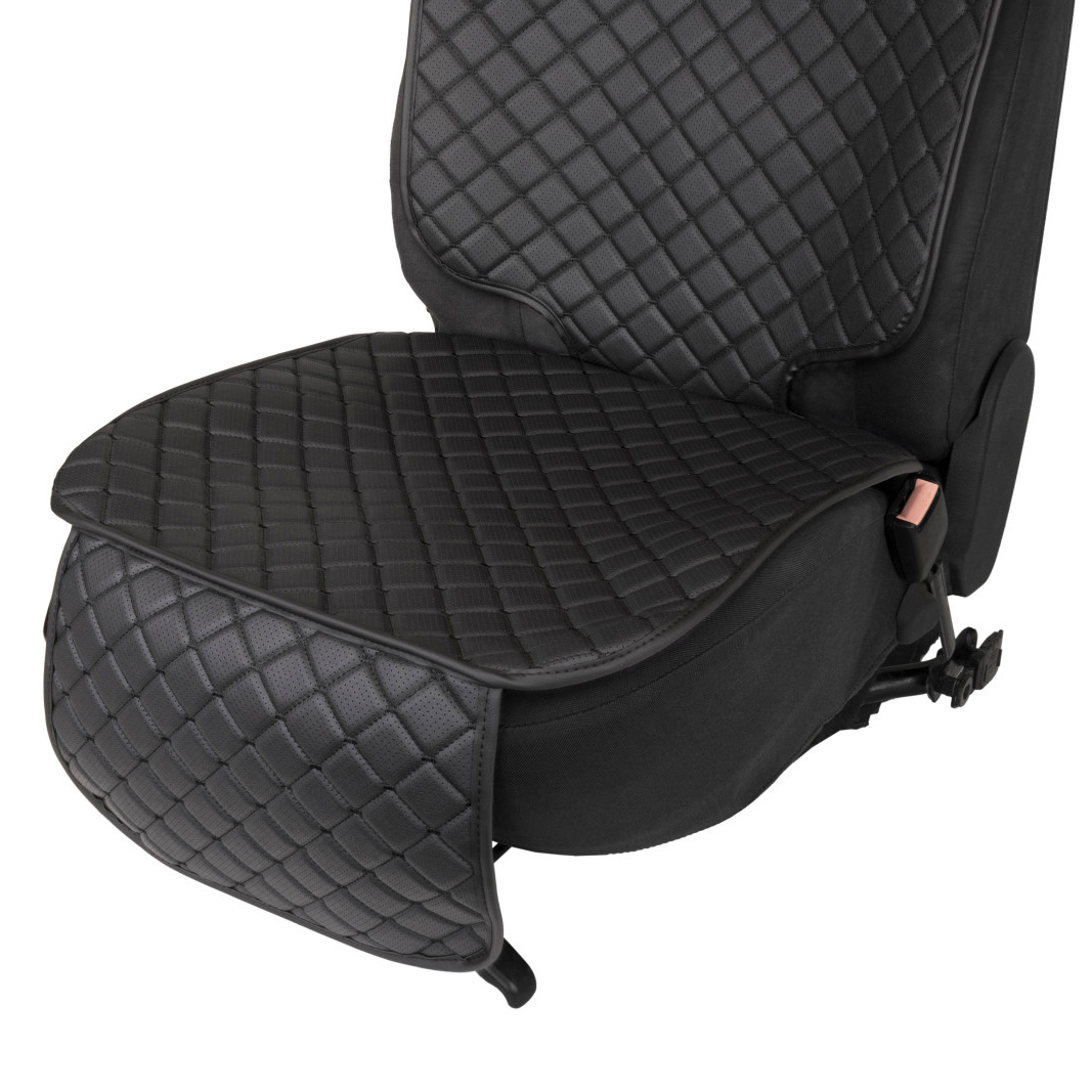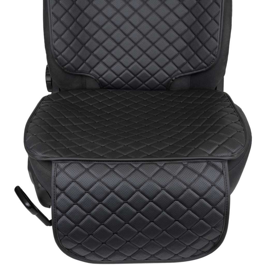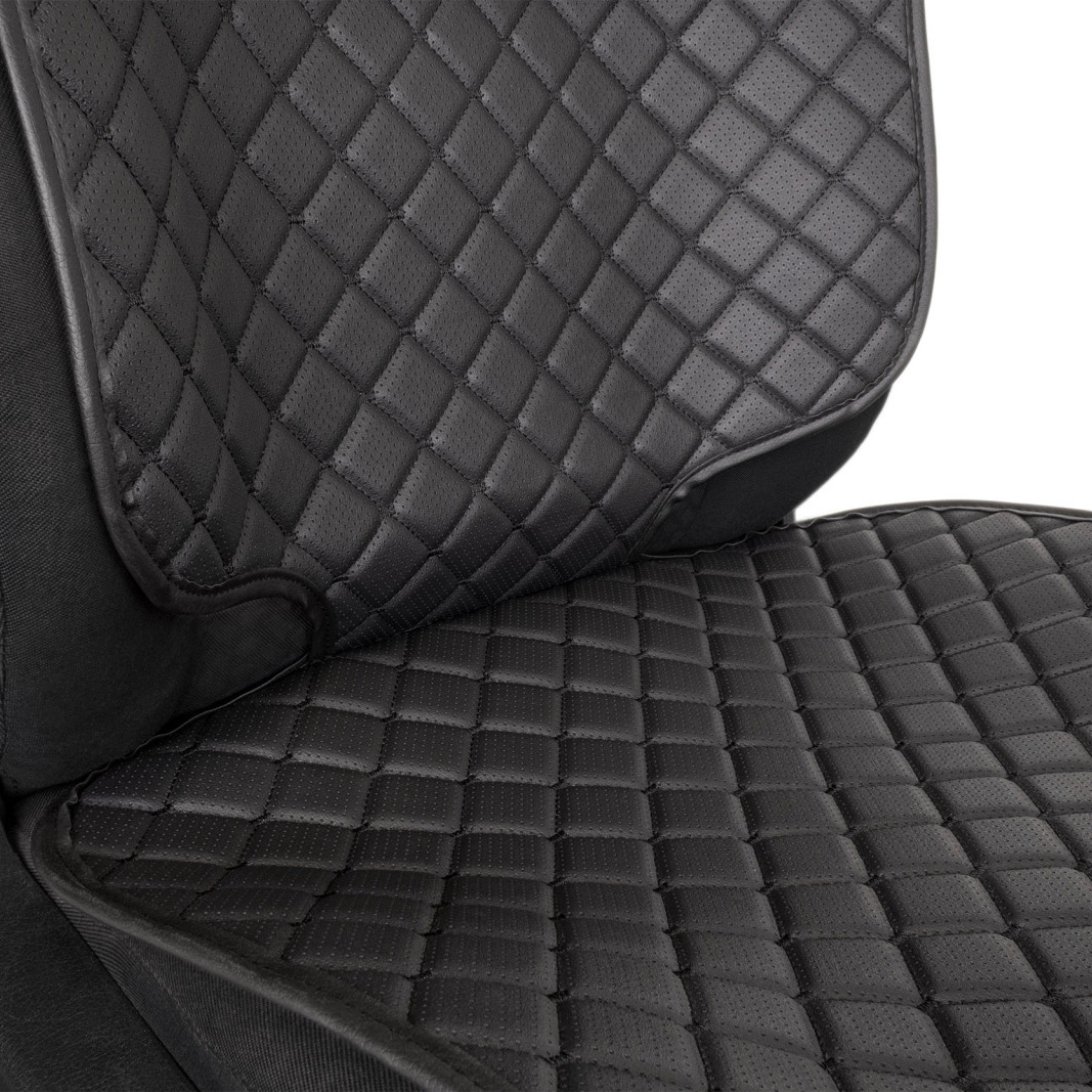 Накидка под детское автокресло из эко-кожи, черный ромб с черной нитью и кантом